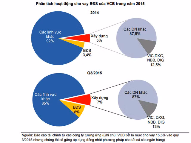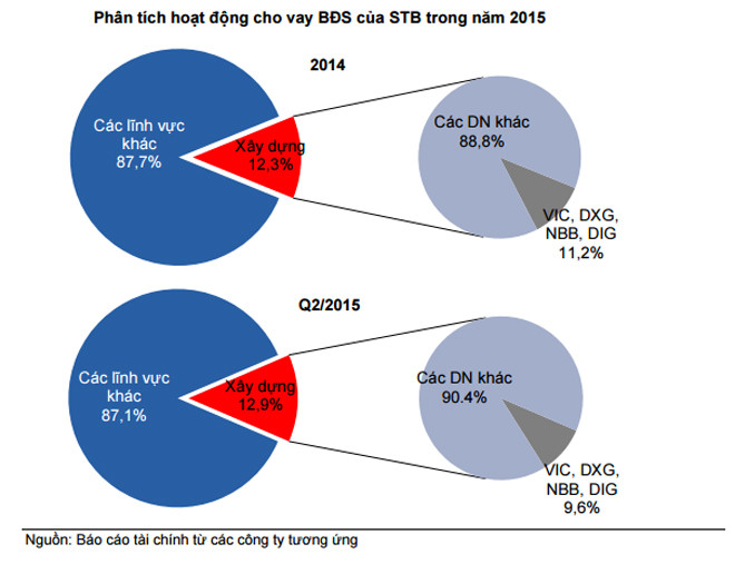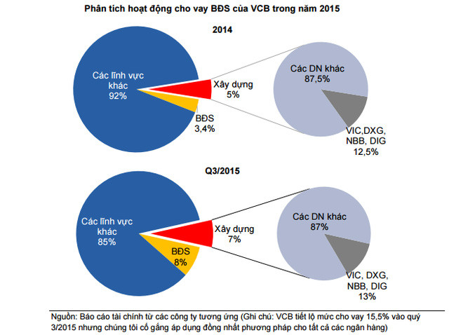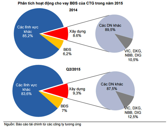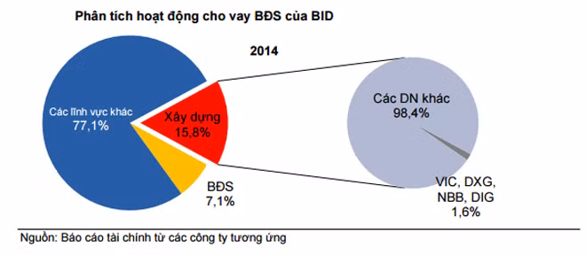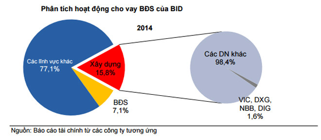 Báo cáo này chỉ ra, mặc dù thông tin cho vay bất động sản không được công bố đồng nhất, mức độ cho vay “xây dựng” và “bất động sản” của BIDV cho thấy có thể coi đây là ngân hàng hoạt động mạnh nhất trong lĩnh vực cho vay bất động sản với dự nợ bất động sản chiếm 22,9% trong tổng dư nợ năm 2014.