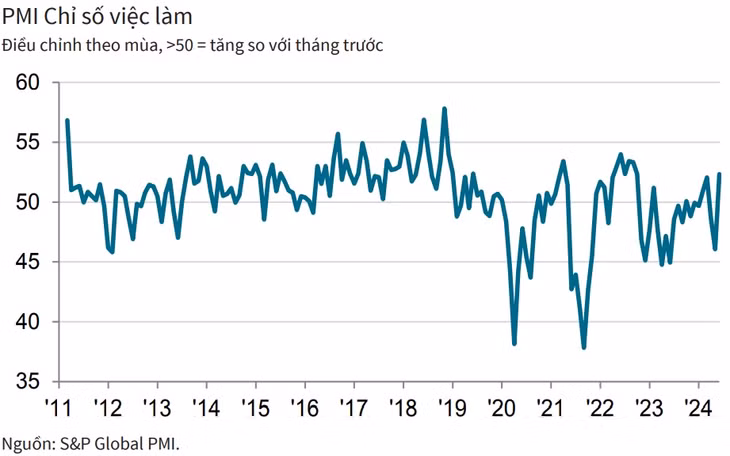 Trong một số trường hợp, các công ty cho biết, việc thiếu nhân công làm tăng lượng công việc chưa thực hiện. Kết quả là, số lượng nhân viên tăng lần đầu tiên trong 3 tháng, và tốc độ tăng là mạnh. Tuy nhiên, trong một số trường hợp, việc tuyển dụng mới chỉ là cho công việc tạm thời.