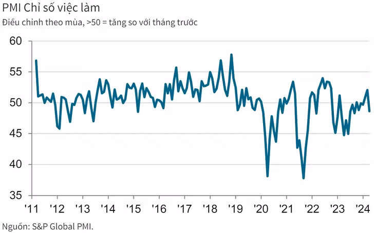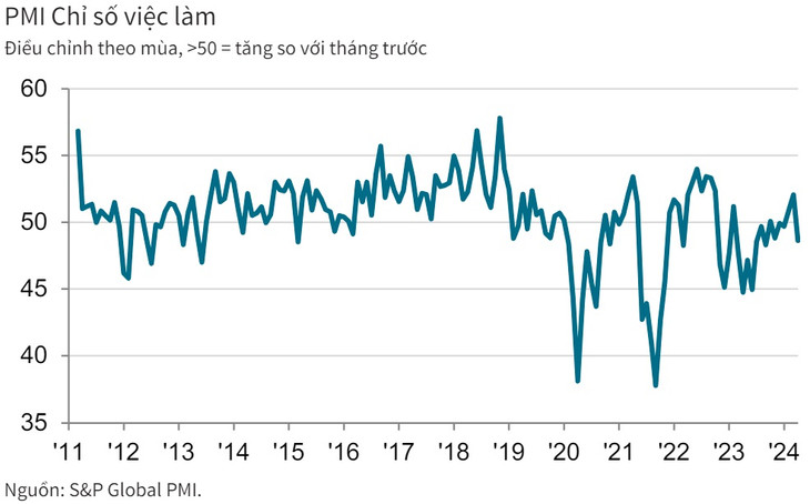 Tuy nhiên, trong thời điểm số lượng đơn đặt hàng mới tăng trở lại, việc giảm số lượng nhân viên khiến các công ty khó hoàn thành kịp thời các đơn hàng. Kết quả là, lượng công việc tồn đọng tăng lần đầu tiên trong 3 tháng, mặc dù mức tăng chỉ là nhẹ.