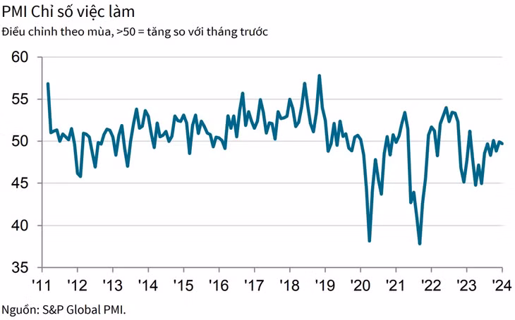 "Một phần, các công ty đã sử dụng hàng tồn kho thành phẩm để đáp ứng yêu cầu đơn hàng, từ đó khiến hàng tồn kho sau sản xuất tiếp tục giảm. Trên thực tế, tốc độ giảm kỳ này là nhanh nhất trong 4 tháng, và là 1 trong 2 lần giảm mạnh nhất kể từ tháng 1/2023", báo cáo của S&P Global nhận định.