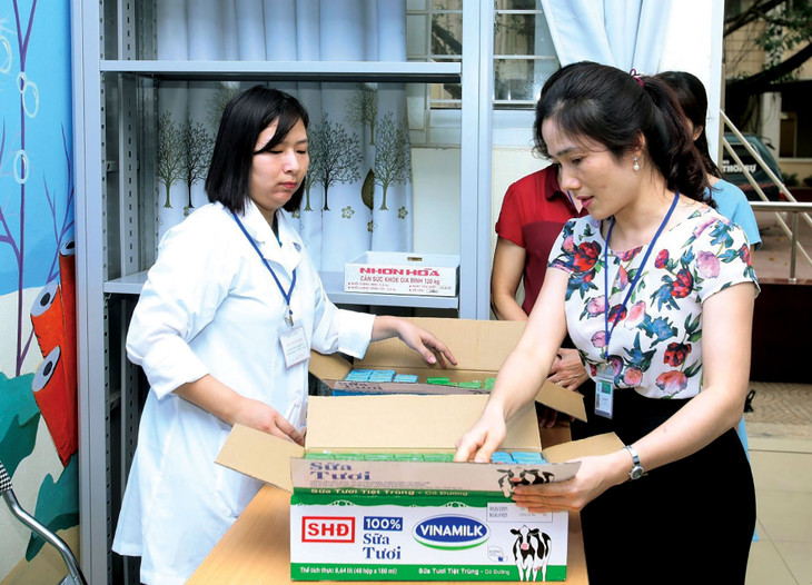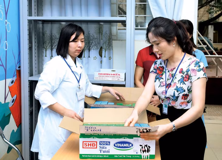 Trường Mầm non Hoa Hồng (quận Cầu Giấy) có kế hoạch rất cụ thể, bài bản và chặt chẽ trong công tác giao, nhận sữa trước và sau khi cho trẻ uống sữa. Ban giám hiệu Nhà trường thông tin: Ngay từ những ngày cuối tháng 12/2018, Trường đã bố trí khu nhà kho chứa sữa đảm bảo theo đúng yêu cầu về quy cách bảo quản, phân công nhân viên có sổ theo dõi việc giao, nhận sữa cũng như kiểm đếm lại vỏ hộp sau khi trẻ uống xong. Hàng ngày, các lớp có sổ theo dõi riêng. Theo dõi, quản lý, giám sát việc thực hiện còn có nhân viên bếp, nhân viên y tế, Ban giám hiệu và một thành phần không thể thiếu là Ban đại diện cha mẹ học sinh.