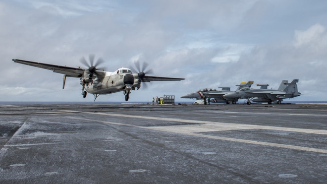 Máy bay C-2 Greyhound đảm nhận việc chuyên chở hậu cần và khách từ đất liền lên thăm tàu sân bay. Mỗi chiếc có khả năng chở 26 hành khách hoặc 9,3 tấn hàng hóa.