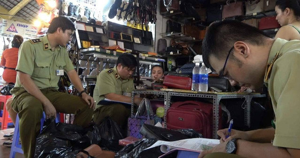 Trước đó, từ ngày 11 đến 12-7, lực lượng QLTT cũng kiểm tra hàng loạt điểm kinh doanh tại 2 khu vực trên, thu giữ gần 2.000 túi xách, bóp, ví, dây nịt, giày dép, thắt lưng, quần áo... có dấu hiệu giả mạo các thương hiệu nổi tiếng thế giới như Longchamp, Patek Philippe, Montblanc, không hóa đơn chứng từ chứng minh nguồn gốc xuất xứ, không đăng ký kinh doanh với tổng số hàng hóa vi phạm gần 300 triệu đồng.