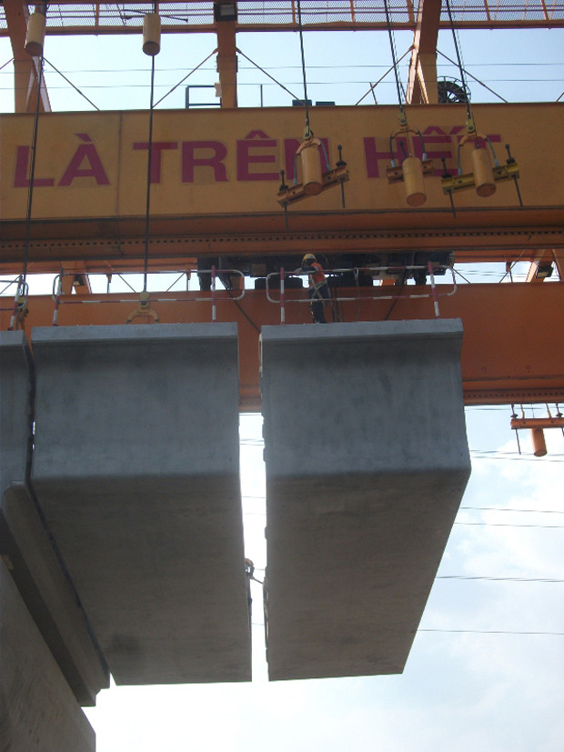 12 giờ trưa, mặt trời chiếu gay gắt trên công trường nhưng những công nhân thi công lao lấp dầm vẫn chăm chỉ làm việc. Được biết, mỗi đốt dầm đều được kiểm tra, kiểm nghiệm chặt chẽ trước khi đưa đi lắp đặt.