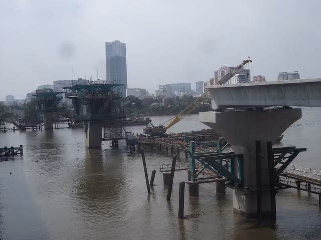 Những hình ảnh trên chụp tại đoạn cầu Sài Gòn, đã có khoảng 60 công nhân, kỹ sư tập trung thi công. Đây là khu vực khó khăn trong thi công bởi phải thi công dưới nước, mặt bằng chật, xà lan khó di chuyển và phải phụ thuộc vào con nước và thời gian đóng mở đập ngăn triều của Trung tâm Chống ngập nên lực lượng công nhân đã tập trung bơm nước, dọn dẹp, vệ sinh các thiết bị máy móc…để đảm bảo tiến độ công việc.
