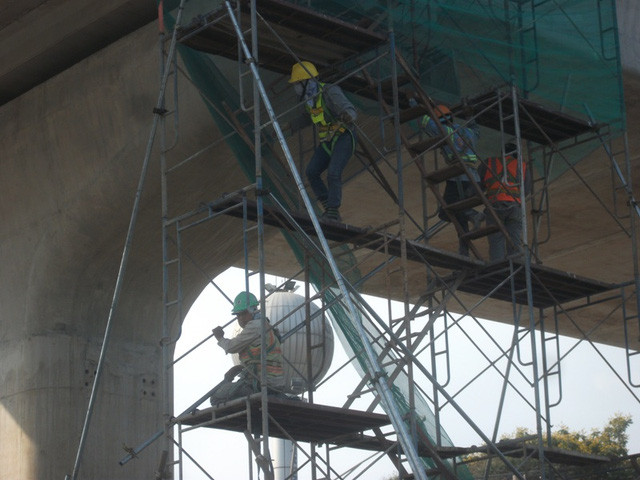Hơn 1h, một số công nhân mới bắt đầu ngưng tay để ăn chút cơm trưa lót dạ. Nhiều công nhân nữ cho biết nhìn dàn giáo xây dựng được lắp đặt kín mít cũng thấy sợ, nhưng với quy trình kiểm tra an toàn xây dựng nghiêm ngặt của nhà thầu Nhật Bản nên ai cũng yên tâm.