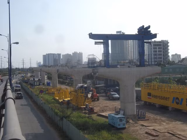 Chạy từ đường Nguyễn Hữu Cảnh, đoạn qua nhà máy Ba Son (quận 1) qua cầu Sài Gòn và sau đó chạy dọc xa lộ Hà Nội, hình ảnh đoạn nhịp dầm dài hàng trăm mét của dự án xây dựng tuyến metro Bến Thành – Suối Tiên đã thành hình kể từ khi khởi công dự án vào tháng 8/2012.