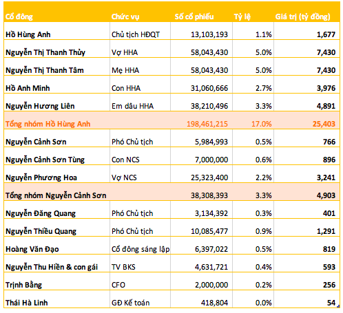 -Ông Hồ Anh Minh, con trai ông Hồ Hùng Anh sở hữu hơn 31 triệu cổ phiếu tương đương giá trị gần 4.000 tỷ đồng.
