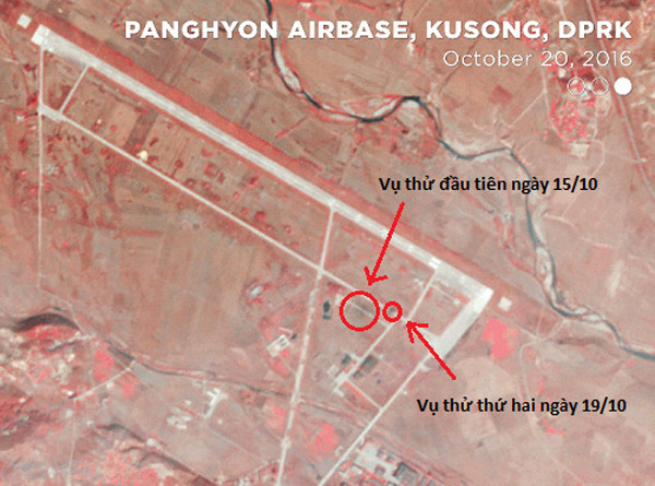 Vết cháy sém trên mặt đất đánh dấu vị trí luồng khí xả tên lửa. Dấu vết của vụ phóng thử đầu tiên hôm 15/10 có kích thước lớn, cho thấy quả tên lửa gặp phải sự cố nghiêm trọng, thậm chí là phát nổ ngay trên bệ phóng. Vết cháy của vụ thử hai hôm 19/10 nhỏ hơn, có khả năng tên lửa đã rời bệ phóng và lấy độ cao trước khi bị phá hủy.