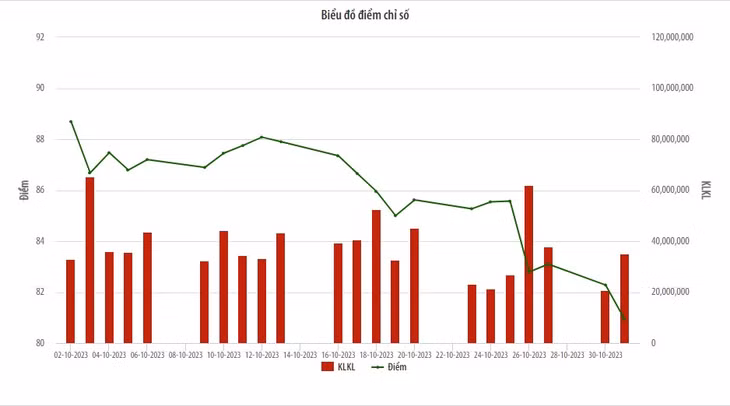 Thanh khoản thị trường cũng giảm mạnh, khối lượng giao dịch bình quân giảm 35,52%, đạt xấp xỉ 44,43 triệu cổ phiếu/phiên, giá trị giao dịch bình quân giảm 37,69% so với tháng 9/2023, đạt hơn 652 tỷ đồng/phiên.