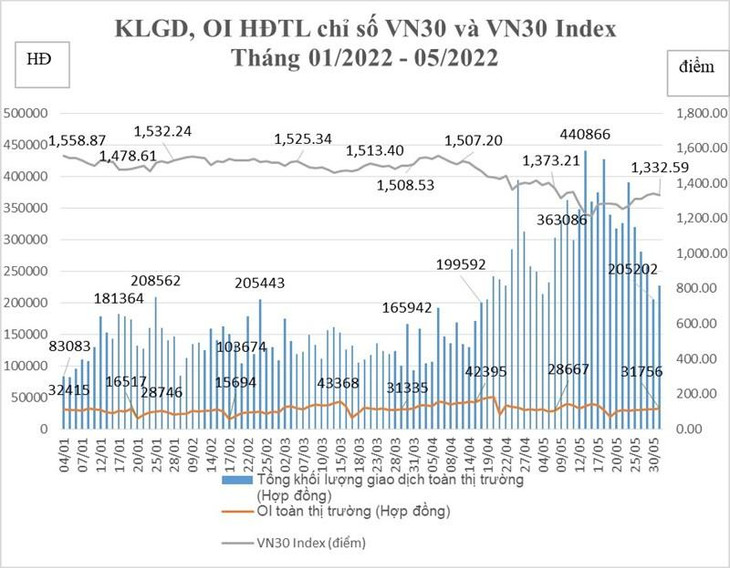 Hình 1: Tổng hợp giao dịch Hợp đồng tương lai Chỉ số VN30 tháng 5/2022