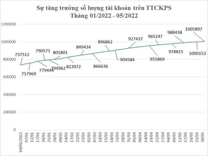 Tỷ trọng giao dịch của nhà đầu tư nước ngoài trong tháng 5/2022 giảm so với tháng 4/2022, chiếm 1,62% tổng khối lượng giao dịch toàn thị trường. Số lượng tài khoản giao dịch phái sinh vẫn tiếp tục tăng so với tháng trước. Tại thời điểm cuối tháng 5/2022, số lượng tài khoản giao dịch phái sinh đạt 1.005.897 tài khoản, tăng 3,36% so với tháng trước.