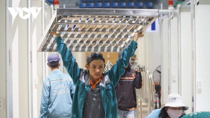 | Công việc tháo các mô đun tại bệnh viện dã chiến ở Đà Nẵng được tiến hành khẩn trương |