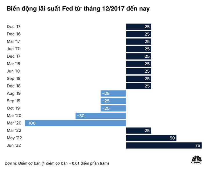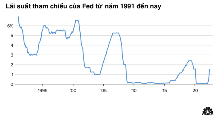 Sau nhiều tuần đồn đoán của thị trường, Uỷ ban Thị trường mở Liên bang (FOMC) – cơ quan ra quyết định chính sách tiền tệ của Fed - cuối cùng đã nâng lãi suất tham chiếu (fed fund rates) lên 1,5-1,75%. Đây là mức lãi suất cao nhất của Fed kể từ khi Covid-19 trở thành đại dịch vào tháng 3/2020.