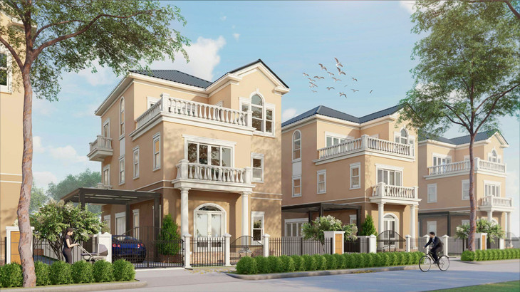 Mỗi ngôi biệt thự đều có 2 tầng lầu với phần mái được thiết kế dốc, lối vào rộng thoáng khá ấn tượng. Không gian sinh hoạt trong nhà được bố trí hợp lý, thông thoáng để ánh sáng và gió trời có thể “thoải mái” lan tỏa theo mọi hướng. Phòng khách, phòng ăn và bếp liên thông tạo không gian liên hoàn, đa năng trong việc sử dụng, vô cùng thuận tiện để chủ sở hữu thiết kế nội thất theo sở thích riêng.