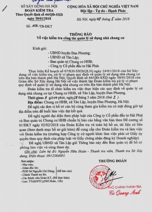 Được biết, đây không phải là dự án duy nhất mà chủ đầu tư Hải Phát bị cư dân lên tiếng “tố” lùm xùm. Mới đây, cư dân HHB Tân Tây Đô đã gửi “Bản yêu cầu 8 điểm” yêu cầu chủ đầu tư Hải Phát thực hiện các nghĩa vụ bắt buộc theo quy định pháp luật.