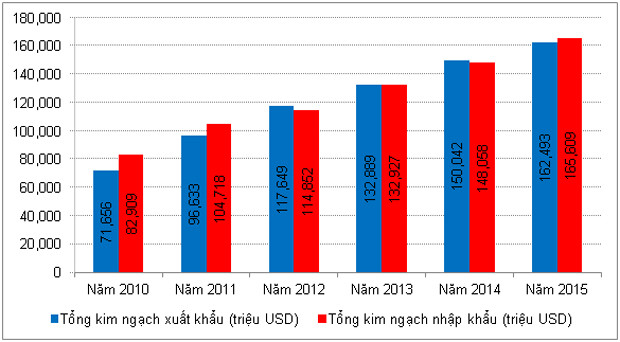 Cán cân thương mại nhiều khả năm thâm hụt trong năm 2016 khi kinh tế tiếp tục đà tăng trưởng và trong bối cảnh Việt Nam vẫn chưa có thị trường công nghiệp bổ trợ và các mặt hàng nhập khẩu vẫn phụ thuộc rất lớn vào thị trường Trung Quốc.