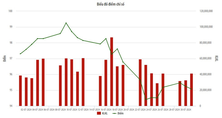 Chỉ số UPCoM Index có xu hướng giảm và giảm mạnh trong nửa cuối tháng, đóng cửa phiên giao dịch cuối tháng đạt 95,07 điểm, giảm 2,53% so với cuối tháng 6/2024.