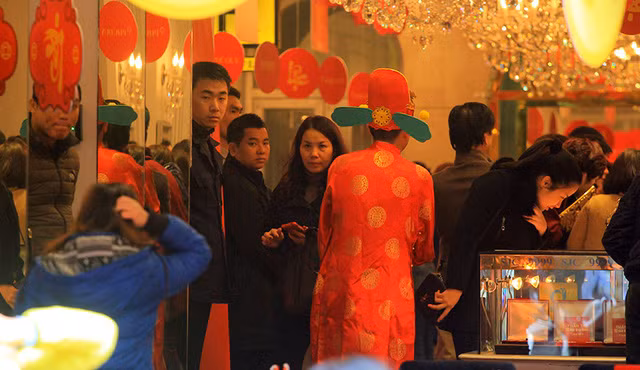 Ngày mùng 10 tháng Giêng âm lịch là ngày vía Thần Tài. Theo quan niệm dân gian, mua vàng vào ngày vía Thần Tài sẽ gặp nhiều may mắn, thuận lợi trong năm mới. Thế nhưng ngay hôm nay, ngày mùng 9 tháng Giêng âm lịch, không khí mua bán vàng tại các cửa hàng vàng lớn ở Hà Nội đã tấp nập và nhộn nhịp.