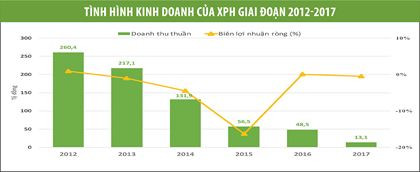 Tình hình kinh doanh của XPH giai đoạn 2012 - 2017 đều theo chiều hướng đi xuống. Nếu như doanh thu thuần của XHP năm 2012 là 260,4 tỷ đồng, thì năm 2013 đạt 217,1 tỷ đồng; năm 2014 đạt 131 tỷ đồng; năm 2016 đạt 48,5 tỷ đồng. Doanh thu thuần năm 2017 chỉ còn bằng 5% mức thực hiện năm 2012.