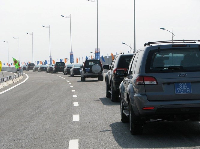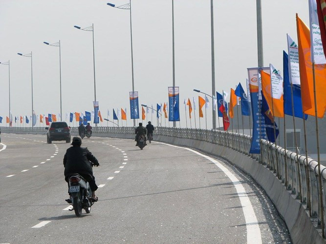 Những người dân đi xe máy cũng được hướng dẫn di chuyển lên cầu trong làn xe đầu tiên.