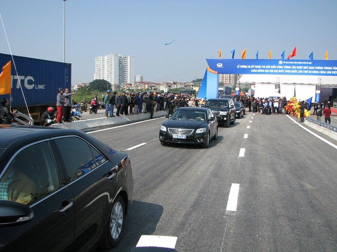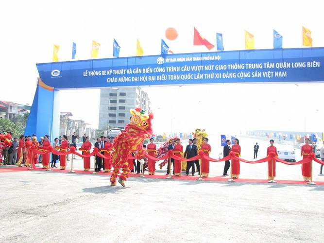 Buổi lễ thông xe bắt đầu lúc 10h ngày 18/1 tại chân cầu vượt thép nút giao thông trung tâm quận Long Biên (Hà Nội).