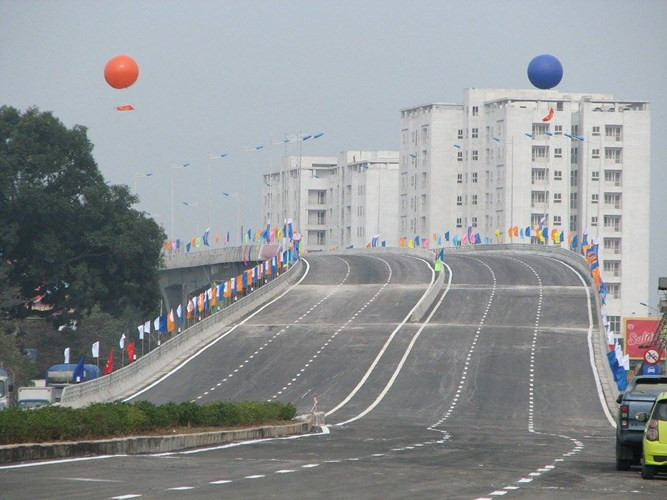 Các phương tiện lưu thông theo hướng từ cầu Đông Trù đến Quốc lộ 5 và ngược lại đi qua cầu vượt trung tâm quận Long Biên.