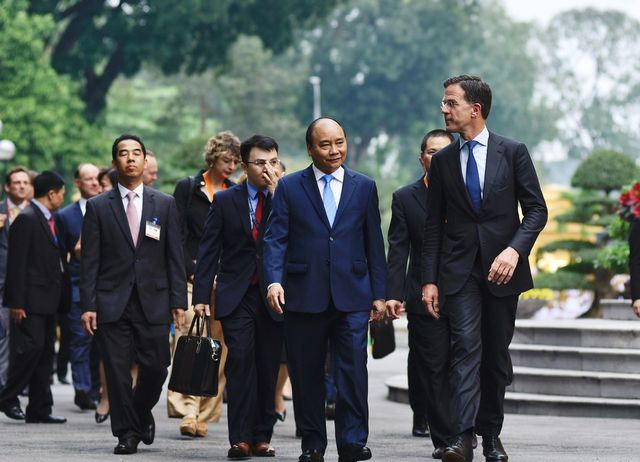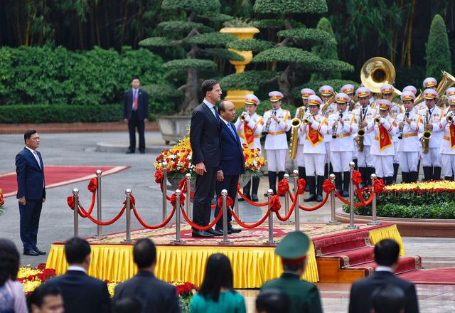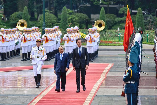 Lúc 14h chiều nay, lễ đón chính thức Thủ tướng Mark Rutte do Thủ tướng Nguyễn Xuân Phúc chủ trì diễn ra tại Phủ Chủ tịch. Ngay sau đó, hai Thủ tướng bước vào cuộc hội đàm và dự kiến sẽ có lễ ký kết các văn kiện và họp báo giữa Việt Nam và Hà Lan.