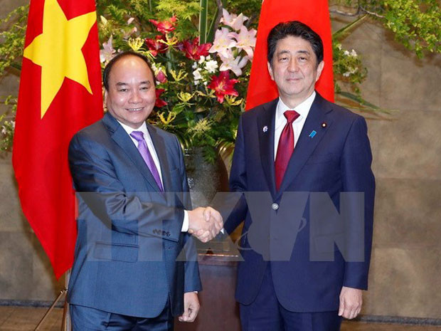 Thủ tướng Shinzo Abe khẳng định rất coi trọng quan hệ với Việt Nam và mong muốn tiếp tục hợp tác chặt chẽ thúc đẩy quan hệ Việt-Nhật phát triển toàn diện hơn nữa và mong sớm đón Thủ tướng Chính phủ Nguyễn Xuân Phúc thăm chính thức Nhật Bản.