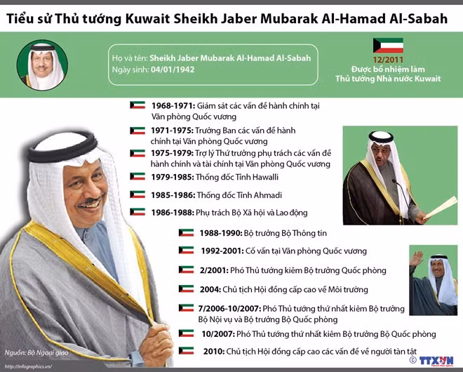 Ông Sheikh Jaber Mubarak Al-Hamad Al-Sabad, Thủ tướng Nhà nước Kuwait , sinh ngày 4/1/1942. Quá trình công tác, từ năm 1968 đến năm 1971, ông Sheikh Jaber Mubarak Al-Hamad Al-Sabad giữ vị trí là Giám sát các vấn đề hành chính tại Văn phòng Quốc vương; từ năm 1971 đến năm 1975 là Trưởng Ban các vấn đề hành chính tại Văn phòng Quốc vương.