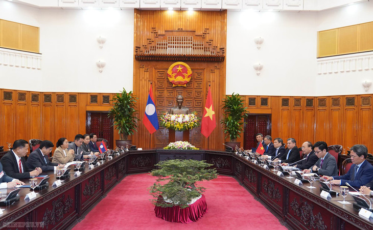 Về dự án Nhà Quốc hội Lào, Thủ tướng cho rằng, đây là công trình mà Đảng, Nhà nước Việt Nam đặc biệt quan tâm, do đó đề nghị hai bên tiếp tục phối hợp tốt, phía Lào tạo điều kiện thuận lợi để bảo đảm tiến độ hoàn thành dự án, kịp bàn giao công trình phục vụ kỳ họp đầu tiên của Quốc hội Lào năm 2021.
