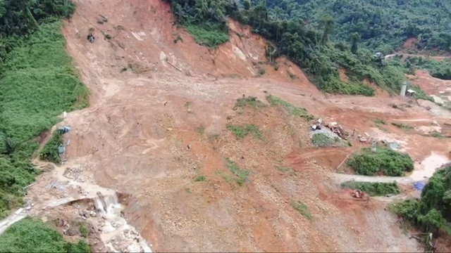 Việc sử dụng flycam với công nghệ tầm nhiệt đã giúp lực lượng chức năng có được những hình ảnh đầu tiên về toàn cảnh hiện trường sạt lở ở thủy điện Rào Trăng 3 nhìn từ trên cao.