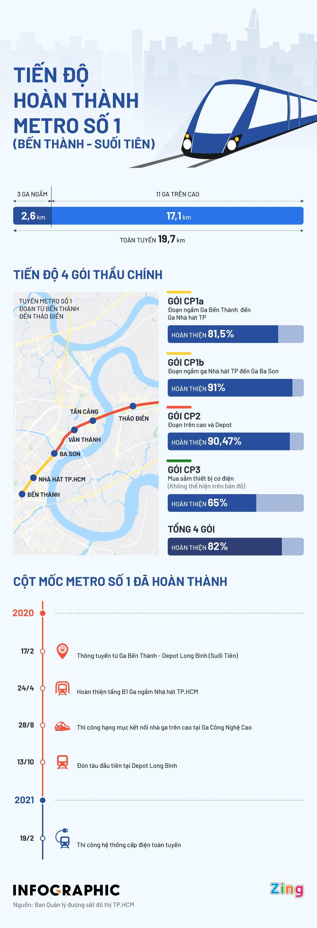 Metro số 1 đã hoàn thành 82%, dự kiến vận hành thử nghiệm trong quý III năm nay.