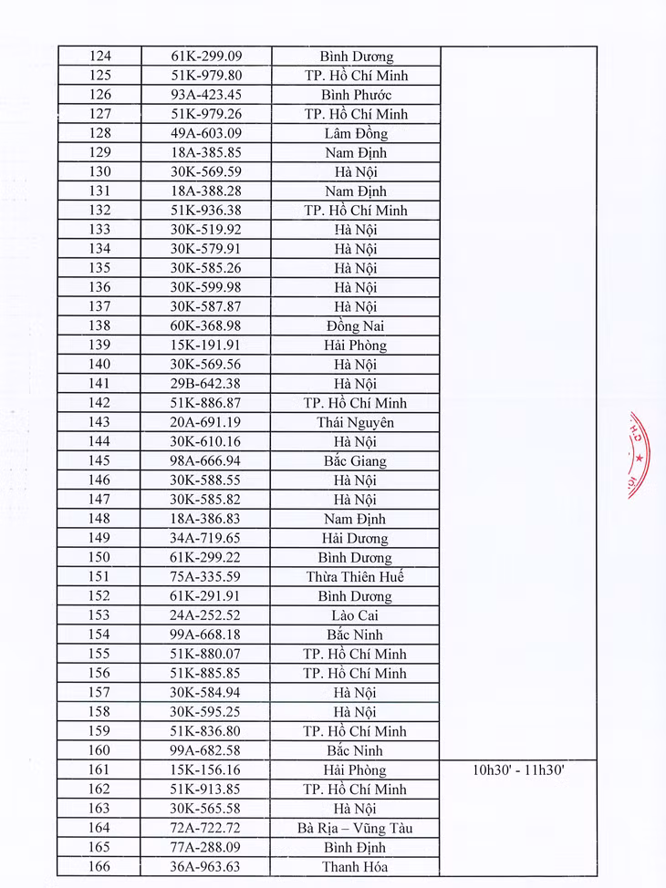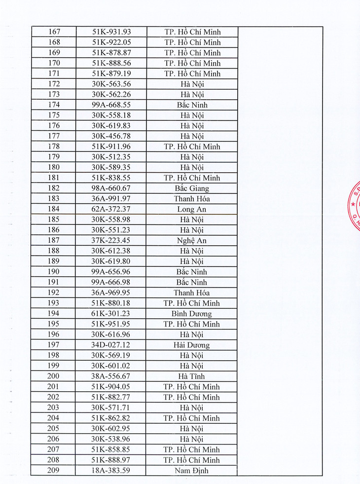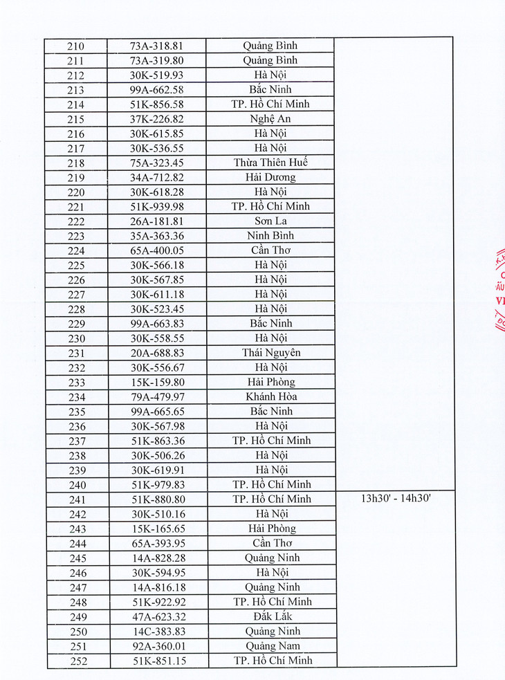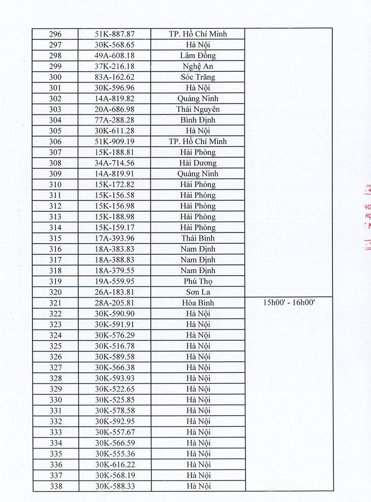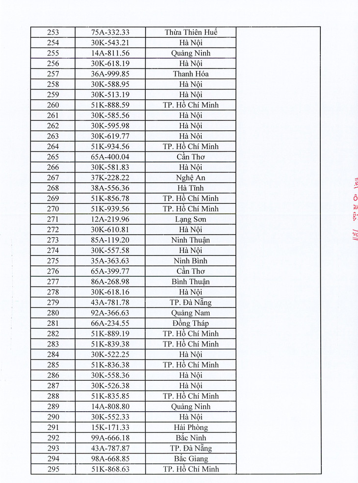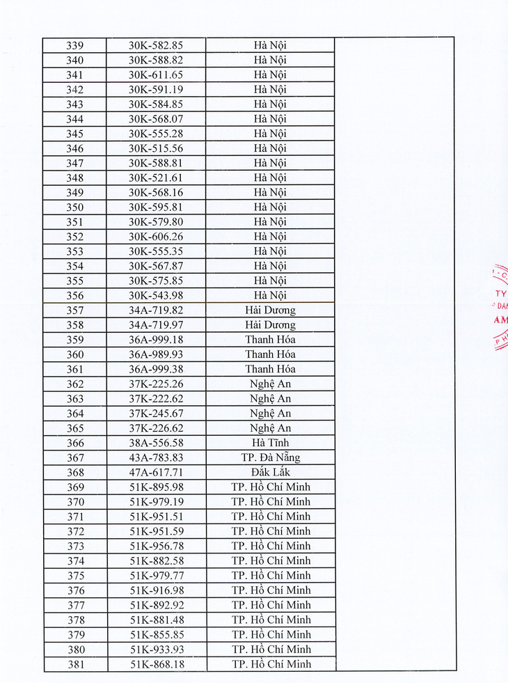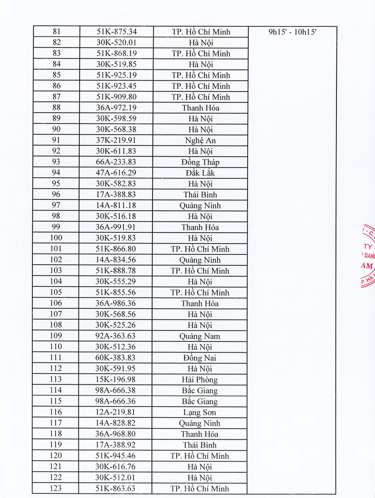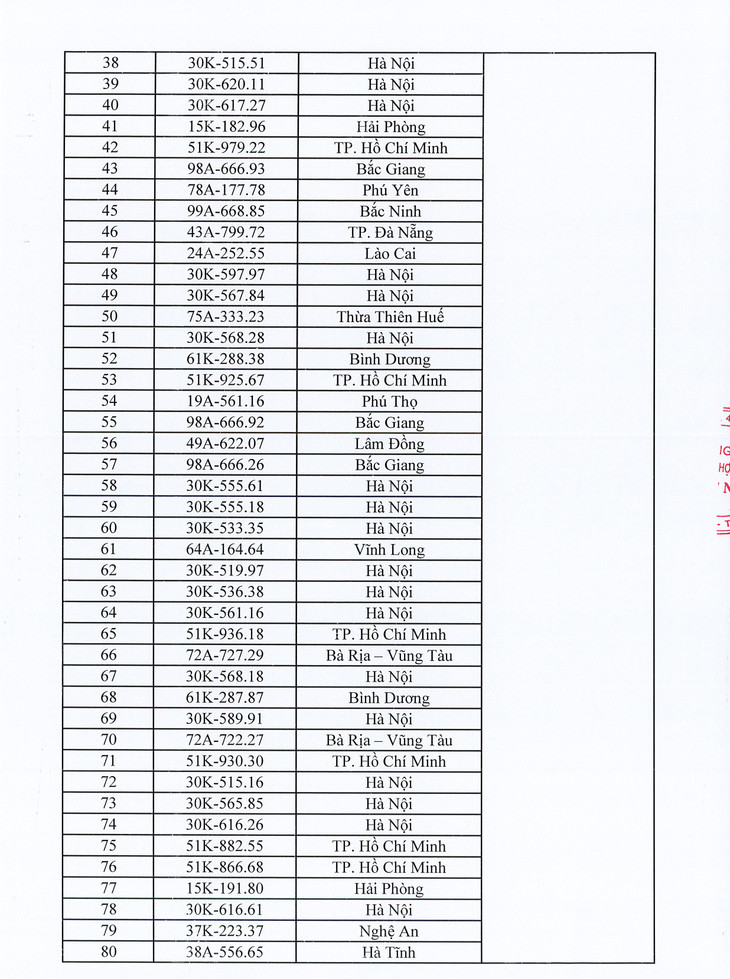 | Danh sách 400 biển số xe ô tô sẽ đấu giá ngày 4/10 |