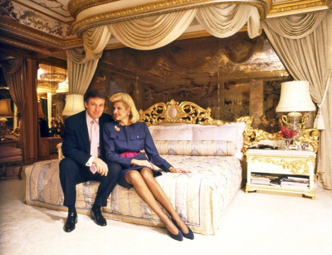 Trump và vợ cả, Ivana trong phòng ngủ ở Tháp Trump tại New York năm 1987. Benson chọn địa điểm này bởi "nó nói lên nhiều điều về con người".