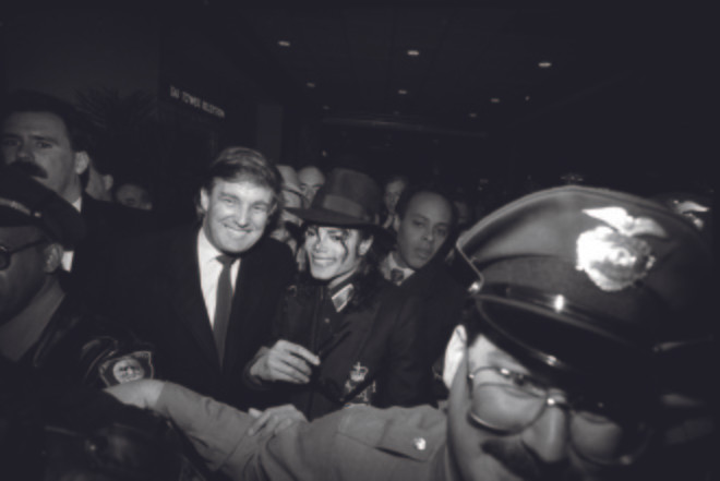 Trump và Michael Jackson, ca sĩ nổi tiếng người Mỹ, khách mời lễ khai trương sòng bạc Taj Mahal năm 1990.