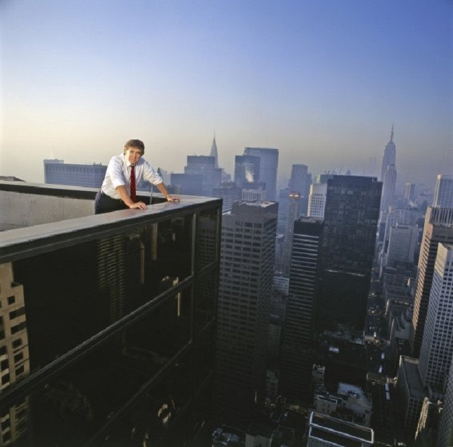 Trump đứng trên đỉnh Tháp Trump ở Đại lộ số 6, thành phố New York năm 1987.