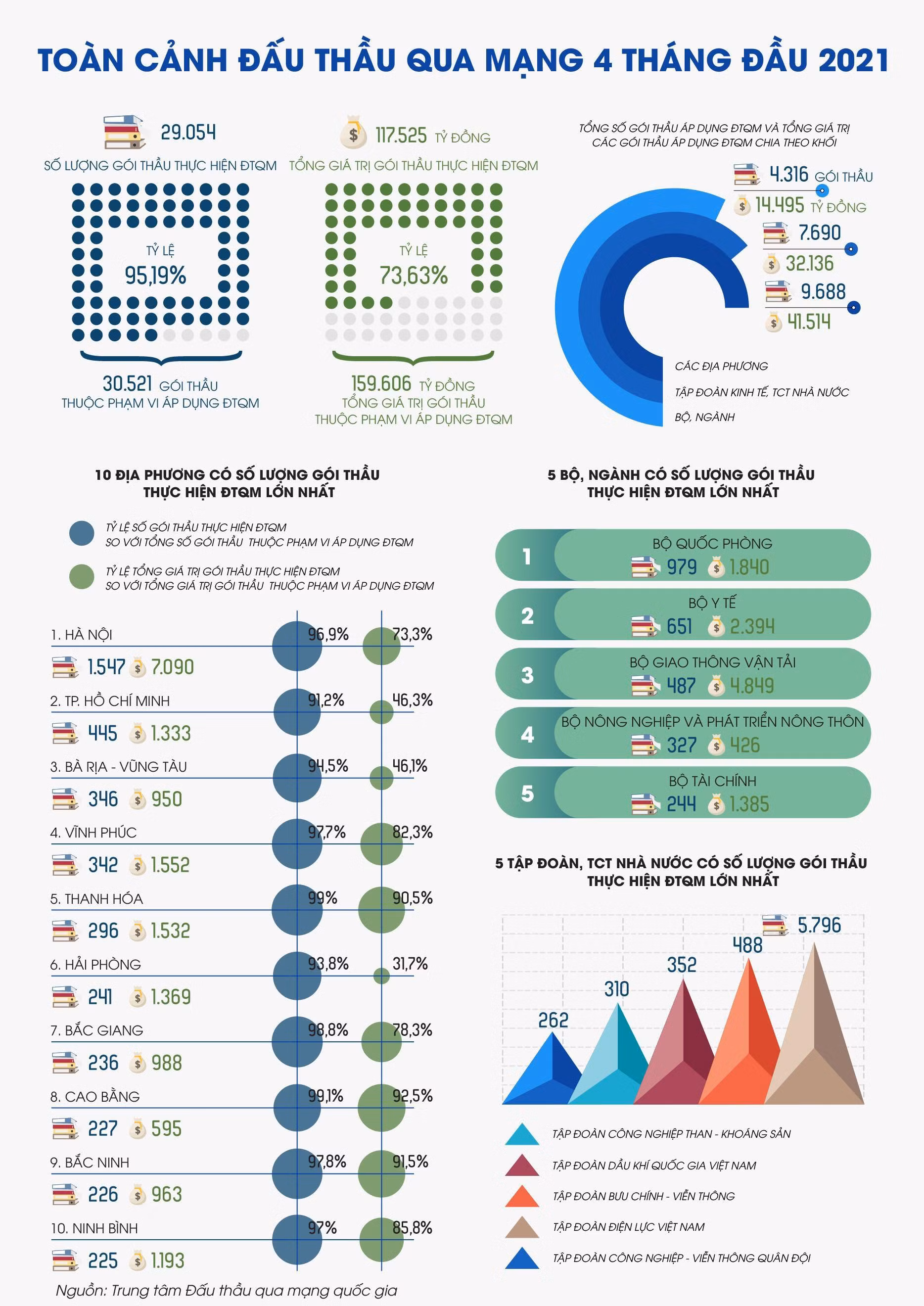 Toàn cảnh đấu thầu qua mạng 4 tháng đầu 2021