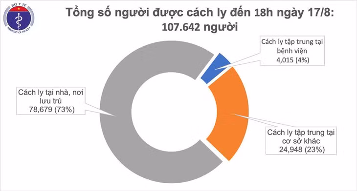 Tổng số người tiếp xúc gần và nhập cảnh từ vùng dịch đang được theo dõi sức khỏe là 107.642 người. Trong đó, 4.015 người cách ly tập trung tại bệnh viện, 24.948 người cách ly tập trung tại cơ sở khác và 78.679 người cách ly tại nhà, nơi lưu trú.