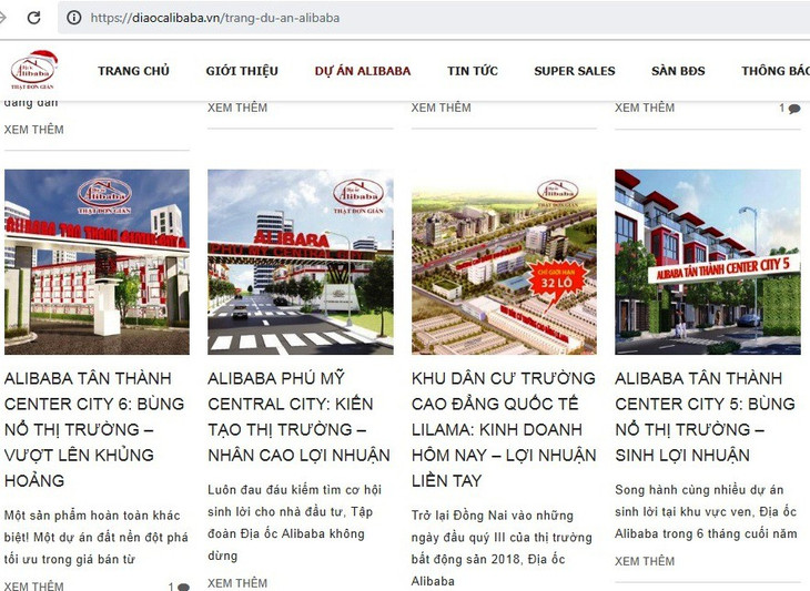 Trước đó, UBND tỉnh Đồng Nai cũng đã đề nghị công an tỉnh này phối hợp với UBND các cấp kịp thời ngăn chặn, điều tra, xử lý nghiêm minh đối với một số công ty bất động sản bán đất “trên giấy”, trong đó có Công ty Cổ phần Địa ốc Alibaba.
