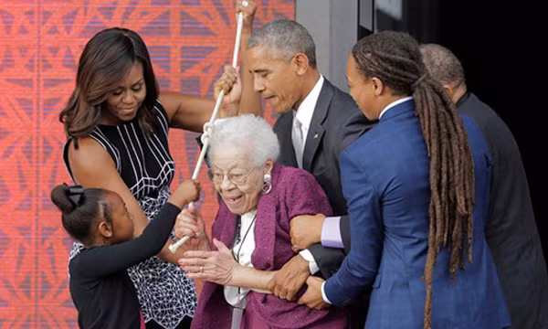 Tổng thống Mỹ sau đó rung chuông của một trong những nhà thờ người da màu lâu đời nhất nước Mỹ để chính thức khai trương bảo tàng.