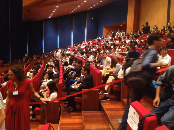 Có mặt trước giờ khai mạc sự kiện hơn 2 tiếng, một nữ sinh ĐH Ngoại thương cho biết cô rất hồi hộp và tự hào khi được tham dự sự kiện. Cô đã nghiên cứu kỹ tiểu sử của ông Obama và hy vọng có cơ hội đặt câu hỏi với Tổng thống về các vấn đề quan hệ Việt - Mỹ trong tương lai gần cùng những ấn tượng của ông về Việt Nam.