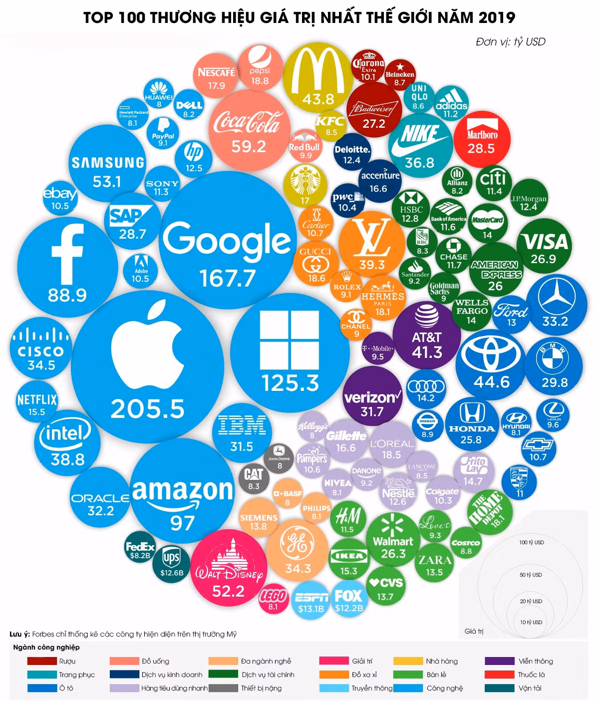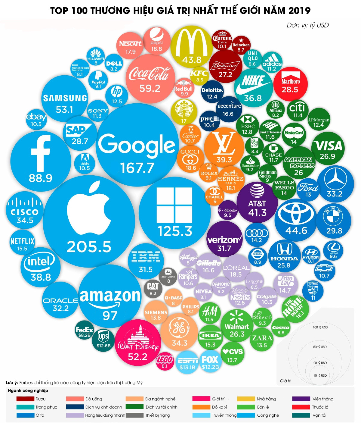 Top 100 thương hiệu giá trị nhất thế giới năm 2019