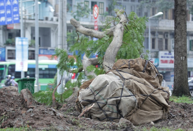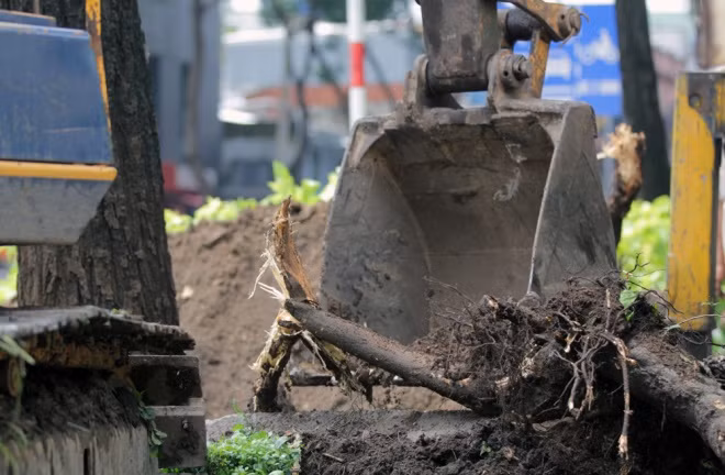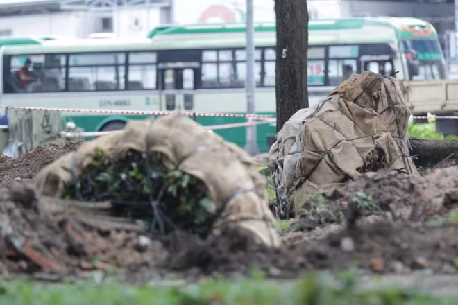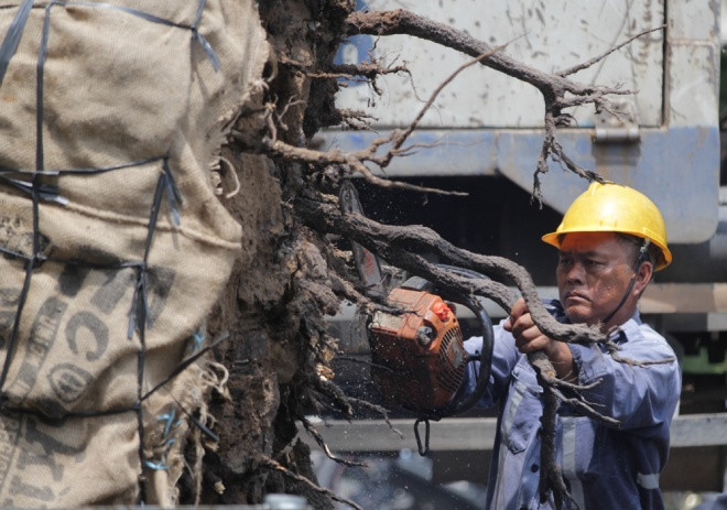 "Việc dùng gầu múc bứng cây được chúng tôi thực hiện cẩn thận, tránh hư hại quá nhiều sẽ khó khăn trong việc nuôi dưỡng sau này", một nhân viên công ty cây xanh chia sẻ.