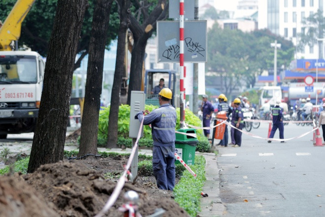 Ngày 12/10, để lấy mặt bằng thi công ga ngầm tuyến metro số 1, hàng chục công nhân công ty cây xanh bứng dưỡng, đốn hạ 75 cây tại Công viên 23/9 và dọc đường Lê Lợi.