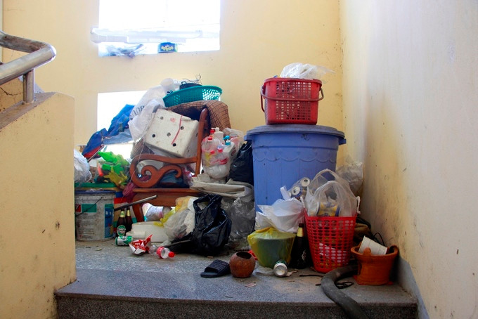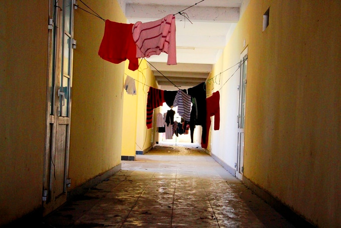 Do tầng 3, tầng 4 khu chung cư vắng bóng người nên nhiều hộ dân ở tầng 2 đã sử dụng hành lang làm nơi phơi quần áo.