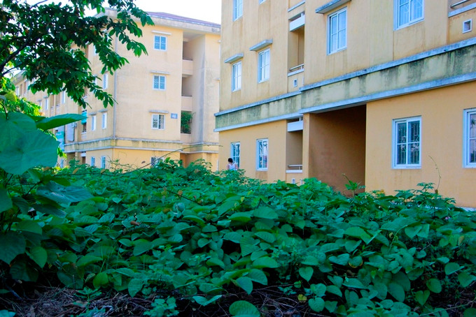 Khuôn viên khu chung cư bỏ hoang, không có người chăm sóc, dọn dẹp.