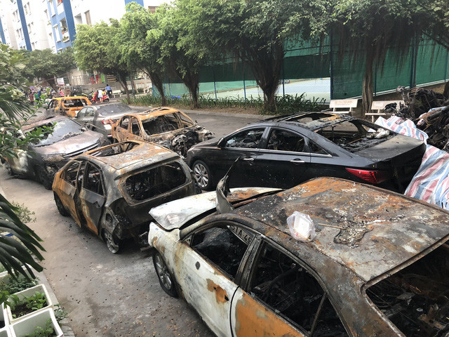 Gần 10 xe ô tô bị cháy được di chuyển ra khỏi hầm chung cư