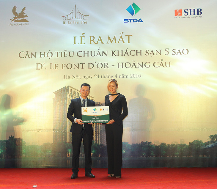 Hoàn toàn bị thuyết phục bởi sự hoàn hảo, tiện nghi và đẳng cấp của D’. Le Pont D’or – Hoàng Cầu, đồng thời nhận thấy nếu chậm trễ sẽ không còn cơ hội sở hữu căn hộ tại đây, rất nhiều khách hàng đã nhanh chóng “xuống tiền” để trở thành chủ nhân xứng tầm. Theo đó, 9 căn hộ D’. Le Pont D’or tiếp tục có chủ, nâng tổng số căn hộ đã bán lên hơn 80% trong tổng số hơn 300 căn. Không chỉ sở hữu căn hộ đáng mơ ước, khách hàng còn nhận ngay 1 lượng vàng SJC 9999 tri ân của chủ đầu tư khi ký hợp đồng mua căn hộ tại sự kiện. Đặc biệt, một chuyến du lịch khám phá nước Pháp xinh đẹp, lãng mạn và tham quan những công trình kiến trúc độc đáo trị giá 50 triệu đồng đã thuộc về khách hàng may mắn nhất, chị Vũ Thị Giang ở Ba Đình – Hà Nội. Như vậy chị Giang đã sở hữu tổng giá trị quà tặng lên đến gần 100 triệu đồng. Cùng tham gia chương trình bốc thăm trúng thưởng tại sự kiện, chị Vũ Xuân Nhung ở Thủy Nguyên – Hải Phòng đã nhận ngay một chuyến du lịch trị giá 15 triệu đồng đến quốc đảo sư tử Singapore.
