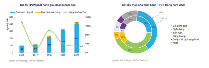 Theo số liệu từ Fiin Group, dù có sự trầm lắng trong quý IV/2020 sau khi Nghị định 81/2020/NĐ-CP có hiệu lực, hoạt động phát hành TPDN năm 2020 nhìn chung vẫn diễn ra rất sôi động với giá trị phát hành mới đạt 429,5 nghìn tỷ đồng, tăng 28,3% so với năm 2019. Qua đó giúp thị trường TPDN đạt quy mô 950,3 nghìn tỷ đồng (trong tổng số hơn 1,2 triệu tỷ đồng đã phát hành 5 năm qua), tương đương 15,1% GDP và 10,3% tổng dư nợ tín dụng toàn hệ thống ngân hàng.
